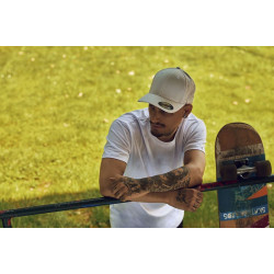 Ukrivljen ščitek, nalepka na ščitku, 8 okrasnih šivov na kapi, mrežica na zadnji strani v barvi kape, strukturiran sprednji profil kape, všita ušesca,..