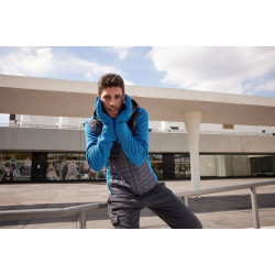 Zadrga, stranska žepa z zadrgo, notranja žepa, spredaj, zadaj in v ovratniku prešit kockast dizajn, melange videz, enostavno vzdrževanje