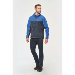 Mikroflis, ki se ne mucka in ga je enostavno vzdrževati, ob strani dodatki iz elastičnega softshella pokončen ovratnik, skrita zadrga z zaščito brade ..