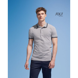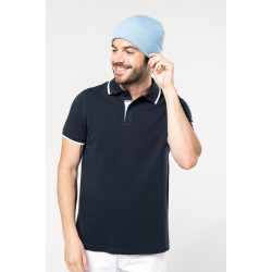 polo majica s kontrastnimi črtami v ovratniku in robovih rokavov ter ob gumbih, štirje gumbi v ujemajočih barvah, stranski razporki240g/m², 100% čes..