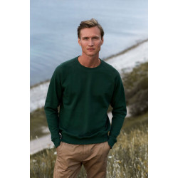 Trak v ovratniku, raglan rokavi, narebrane manšete in robovi, česana notranjost300g/m², 100% česan vijačno preden organski bombaž, fair trade..