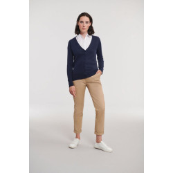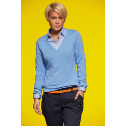 Russell | 710F | ženski v-izrez pleten pulover - Pletenine - elastične manšete in pas, se hitro suši, enostavno vzdrževanje, za pranje do 40° 275g/m², 50%