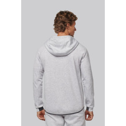 Dvobarvna vrvica, kontrastne manšete na rokavih in spodnjem robu, zadrga, 2 sprednja žepa z zadrgo in zlitimi šivi