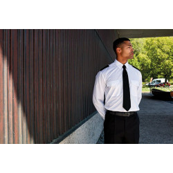 klasičen kroj, ojačan ovratnik, 2 žepa na prsih s poklopcem na gumbe, žep za pisalo na srčni strani, manšete z gumbi, zavihki za ploščice (art. 39.0715) na ramenih, enostavno vzdrževanje, OEKO-TEX® standard 100